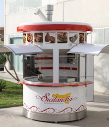 Chiosco Bar realizzato con struttura prefabbricata in profilati di acciaio zincato avente dimensioni circolari pari a ml 2,30 di diametro con superficie coperta pari a mq 4,15 ed altezza utile interna pari a ml 2,70 e complessiva di ml 3,50.